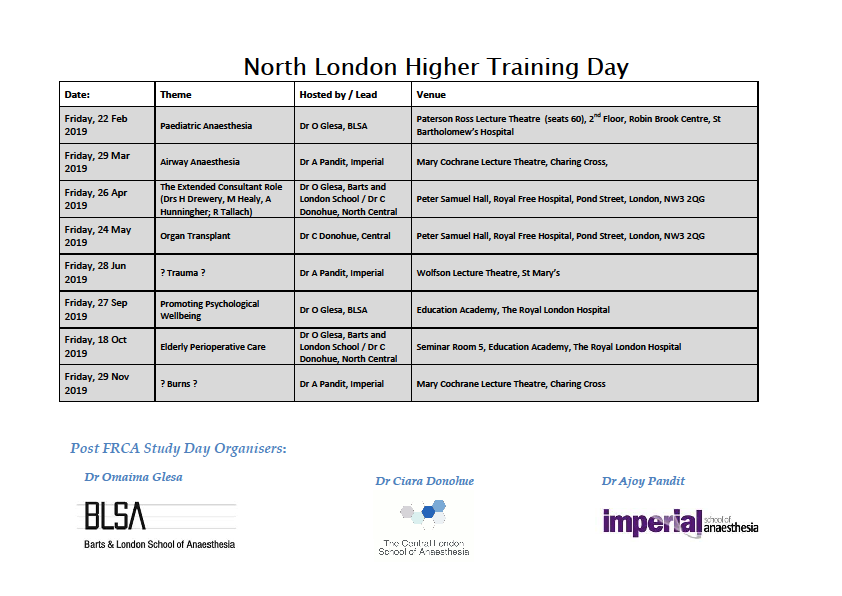 HENWL together with HENCEL provides 10 higher training days per year. Imperial School of Anaesthesia requests you provide evidence of attending at least 5.